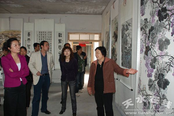 (秦州区委宣传部 裴振刚)4月23日,风和日丽,被一场春雨沐浴的关子镇空气格外清新。在这个美好的日子,秦州区关子镇文化站落成典礼暨关子镇第七届农民书画开展。区政协主席霍秀清,区委常委、宣传部长何忠兰,区政府副区长蒋小丽,区政协副主席王向梅参加书画展开展仪式并参观了书画展。