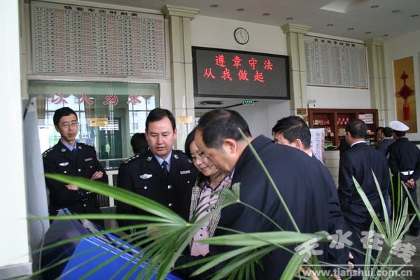 检查组成员保监会高立智主任实地查看天嘉交通运输集团秦州客运总站交通安全管理工作。