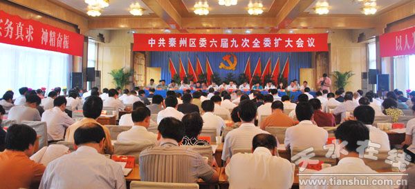 (秦州区委宣传部 裴振刚)7月20日上午,中共天水市秦州区六届九次全委扩大会议在区委礼堂隆重召开。会议主要任务是总结上半年全区各项工作,深入分析改革发展面临的形势,全面安排部署下半年各项工作任务,进一步动员全区各级党政组织和广大干部群众,以更加饱满的精神状态,更加务实的工作作风,积极应对挑战,抢抓发展机遇,开拓创新,扎实工作,确保全面完成今年经济社会发展和党的建设各项工作任务。