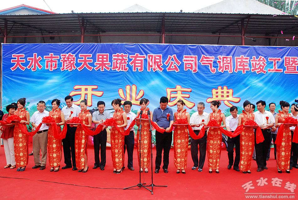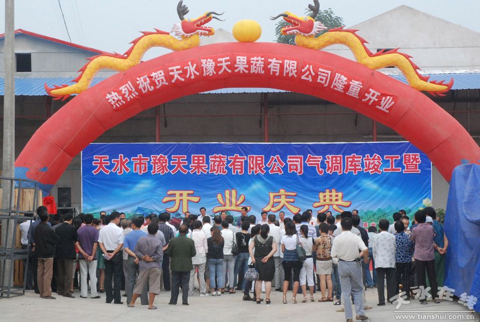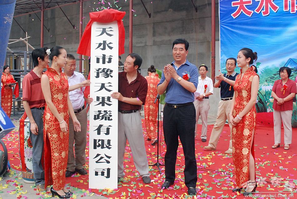 8月8日,天水市豫天果蔬有限公司气调库竣工暨开业典礼在秦州区太京镇举行。天水市委书记、市人大常委会主任张景辉,市委常委、秘书长蒋晓强,市人大常委会副主任韩一兵,副市长赵卫东,市政协副主席魏来全出席典礼。张景辉为公司开业揭牌。