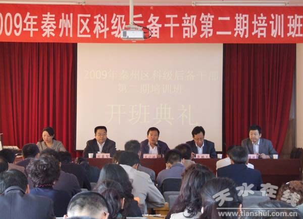 (秦州区委宣传部 辛志锋)9月21日,秦州区2009年科级后备干部第二期培训班在秦州区委党校开班。这次培训是为了认真贯彻落实《党政领导班子后备干部工作规定》,进一步强化对后备干部的理论教育,提高后备干部解决实际问题和驾驭复杂局面的能力,努力建设一支高素质的后备干部队伍。