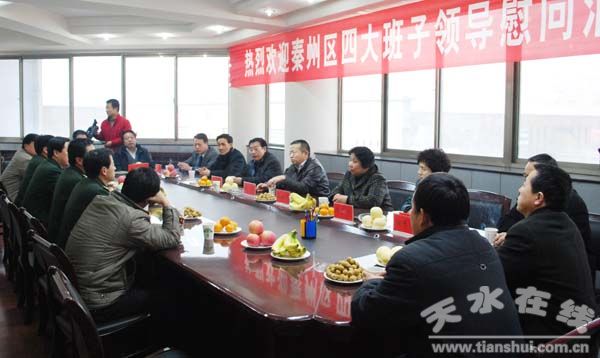 (秦州区委宣传部 石苍林)2月2日,踏着新年的脚步,秦州区委副书记、区长周伟带领区四大组织有关领导和区民政等部门负责人,带着全区人民的亲切问候和关怀,到驻地慰问驻区武警和消防官兵,并为他们送去了慰问品。