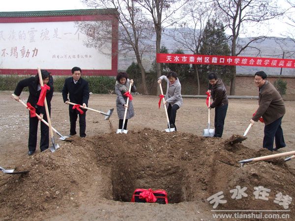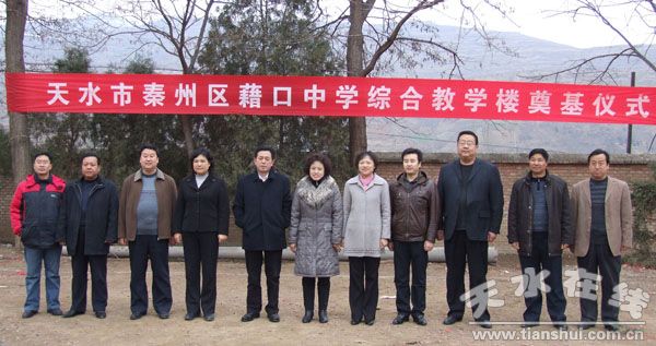(秦州区委宣传部 辛志锋)3月7日,秦州区藉口中学举行综合教学楼奠基仪式。区委常委、宣传部长舒健,区政协副主席王向梅,区教育局副局长武德华,藉口镇政府、藉口中学等相关负责人参加了奠基仪式。