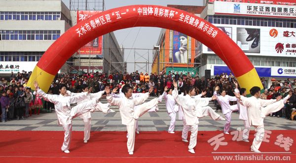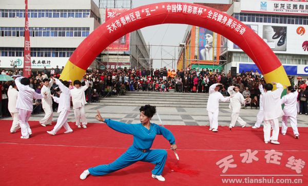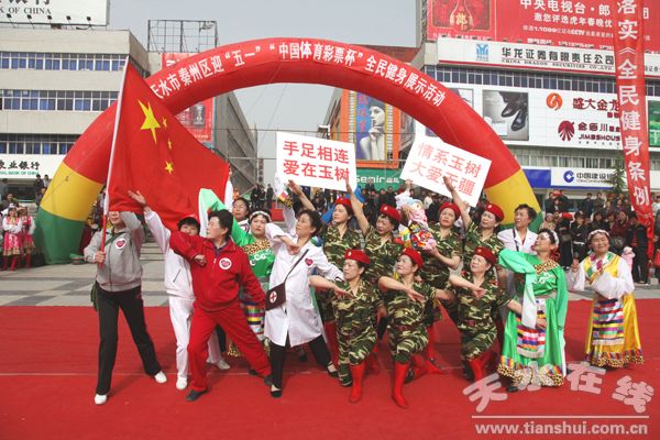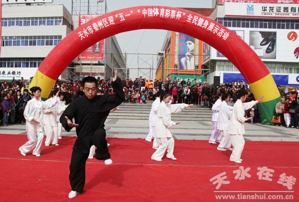 (秦州区委宣传部 辛志锋 )为了迎接“五一”劳动节的到来,进一步活跃节日气氛,丰富广大群众的文化生活,享受体育锻炼带来的健康和快乐,掀起全民健身活动的新高潮。4月29日,由秦州区文化体育局主办的全民健身展示活动在龙城广场举行,15支代表队参加了展演。