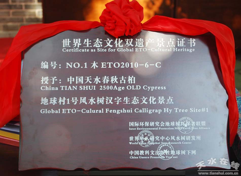 南郭寺春秋古柏被授予“世界生态文化双遗产景点”(图)