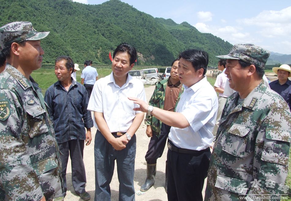 (秦州区外宣办 裴振刚 彭高峰)8月16日,市委常委、秦州区委书记张明泰,区委副书记、代区长周继军,到娘娘坝镇花园村道路抢修点,看望慰问了奋战在救灾一线的天水预备旅官兵,随后又到白音村查看受灾情况,看望受灾群众,筹划灾后重建工作。