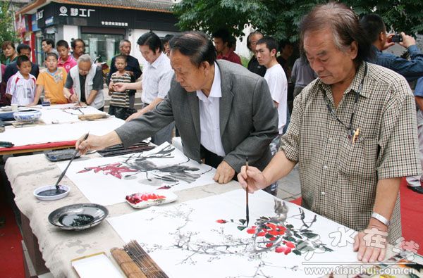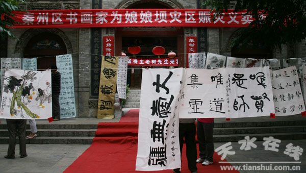 (秦州区外宣办 罗丽琼)8月20日上午,由秦州区文联举办的为娘娘坝镇赈灾书画义卖活动在山陕会馆举办,来自秦州的19位知名书画家参加了此次活动。