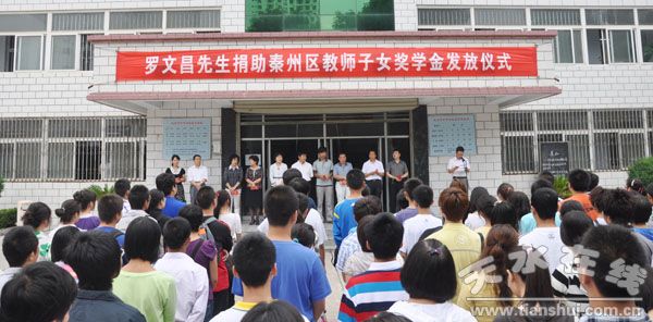 (秦州区外宣办)8月20日上午,秦州区举行了罗文昌先生资助该区教体系统考入高校教师子女奖学金发放仪式。现场为今年118名考入高校的该区教师子女发放奖学金6万元。