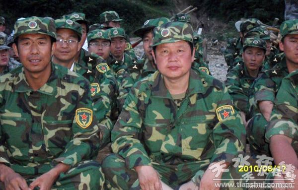 车行一个半小时,30名预备役官兵奉命来到娘娘坝镇遭受水灾最严重的花园村。这个仅有60多户人家的小村子,河堤多处垮塌,道路损毁严重,洪水肆意洗刷着河道,冲毁了群众的住宅。政府副乡长钱强明、柴军军、乡武装干事王建中一看此情此景,二话没说卷起裤腿纷纷跳入淹过膝盖的泥水中,其他干部也不甘示弱,一个个跳进了冰凉的河水中。虽是初秋的季节可地处林区的花园村比较阴湿,河水刺得同志们腿脚生疼,但是没有一个人停下手中的活,老党员坚具仓的脚不小心被一根树枝扎出了血,他只是简单地包扎了一下,就继续挥锹装沙。平时很少干重活的乡干部马旭是刚从学校分配来乡镇工作的年轻干部,他扛着上百斤重的沙袋,在齐腰的水中艰难地来回奔走,汗水湿透了衣衫他也没有停下来喝口水。共产党员何成全因患阑尾炎刚从医院住院回来,就主动请缨投入了抗洪救灾的队伍,副乡长钱强明担心他的身体吃不消,让他歇一歇,可他头也不回地说:“老百姓的生命都受到了威胁,我干这点活算得了什么”。说完他又扛着沙袋投入了湍急的河水中。马海东、任天祥、宁保宏……一个个共产党员、入党积极分子用他们无言的行动践行着他们对党的忠诚,对人民的热爱。同志们的行为,深深感动了花园村的村民,花园村的老老少少,他们有的扛沙袋,有的挖沟渠,有的抢收被洪水吹毁的玉米,老人和孩子们提着热水壶穿梭在河岸边,为预备役官兵倒上一杯杯饱含深情的热茶。70多岁的王国杰老汉看到大家卖力的干活,也跳到水中加入到抗洪抢险的行列,与乡干部高明、刘亚安组成一组装沙袋、筑河堤。中午时分,一位十岁左右的小朋友提着自己家煮熟的玉米,送到同志们面前,他说:“叔叔,你们辛苦了,吃点东西再干,感谢你们。”浓浓的军民鱼水情谊,也深深感染了参加抢险救灾的中梁乡每一位党员干部。