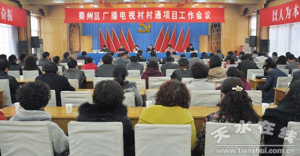 (秦州区外宣办 彭高峰)11月10日,秦州区召开广播电视村村通项目工作会议,下达十一五第二阶段广播电视村村通工程建设任务,力争在年内组织安装19264个地面卫星接收设施,使50%以上乡镇达到广播电视100%全覆盖。
