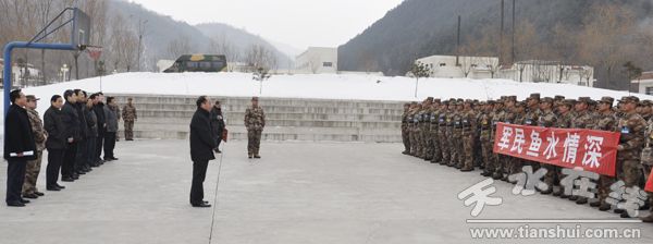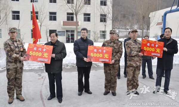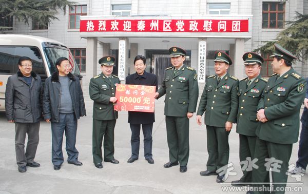 慰问中,张明泰等与驻区部队官兵亲切座谈,向他们致以诚挚的祝福和敬意,让驻区部队广大官兵土气大振,所到之处,掌声阵阵,经久不息。张明泰说,一年来,部队对秦州经济社会建设和维护社会和谐稳定做出了积极贡献,在“8•12”抢险救灾中,给予了大力支持和帮助,真正体现了军民一家亲、一条心,军地鱼水情深的关系得到不断深化;今后,我们会一如继往地做好拥军工作,急部队之所急、想部队之所想,希望通过我们的共同努力,谱写更加壮丽的军地鱼水和谐乐章。