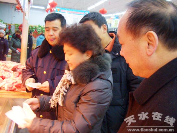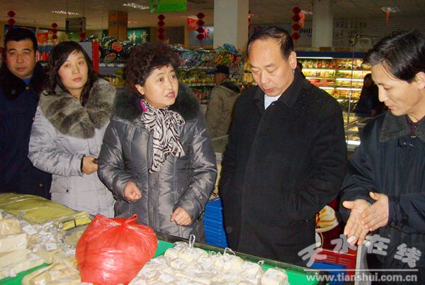 (秦州区外宣办 周云)1月27日,秦州区政府副区长曹亚玲带领卫生、商务、工商、畜牧、食药监、农业、质监等食安委成员单位,联合执法,开展春节前食品质量安全大检查。