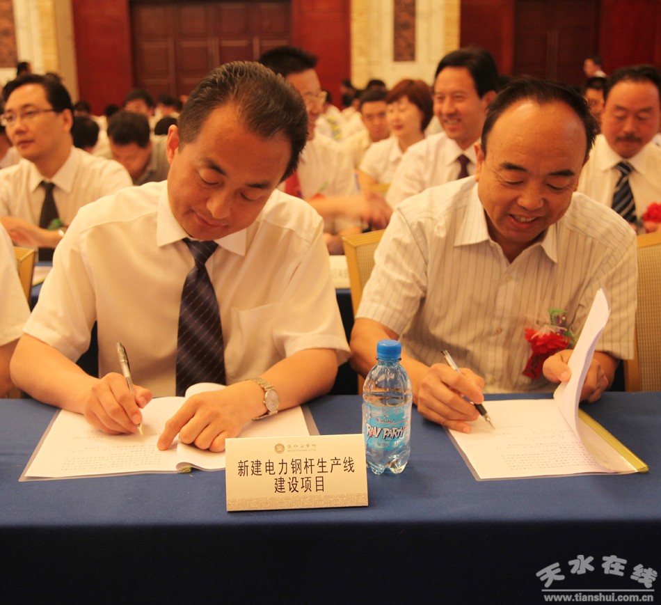 在本次签约仪式上,秦州区集中签约5个项目,分别是:恒信德龙乘用车汽车城建设项目,其总投资6.6亿元,专营通用别克、通用雪佛兰等10个品牌的国内外中高档汽车,建成后,将提供各类档次的汽车专营服务,满足不同层次的消费需求;新建电力钢杆生产线建设项目,其总投资0.6亿元,新建年生产15000吨电力钢杆的生产线一条,建成后,将为电力行业快速发展提供强有力的物资保障;城市再生资源及城市固废综合处理产业园,其总投资1.6亿元,建立以固体废弃物综合处理为循环经济产业链的产业园,建成后,将实现全区垃圾处理“快速化、无害化、资源化、减量化、产业化”;秦州区城中村改造项目,其总投资8.4亿元,改造玉泉镇、王家磨村,拟开发面积为73.3亩,规划总建筑面积约20万平方米,建成后,将进一步改变该区的市容市貌,为“三城联创”注入新活力;2万吨果蔬冷库建设,其总投资0.266亿元,新建各种蔬菜冷库一座,建成后,将进一步提高该区果蔬的保鲜能力,调节农产品淡旺季市场需求,平抑物价。