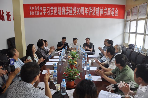 7月10日下午,由天水市美协、秦州区政协主办,秦州区文广局、秦州区文化馆协办的“学习贯彻胡锦涛建党90周年讲话精神”书画笔会在秦州区文化馆内举行。