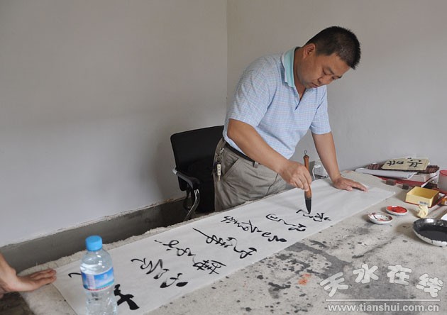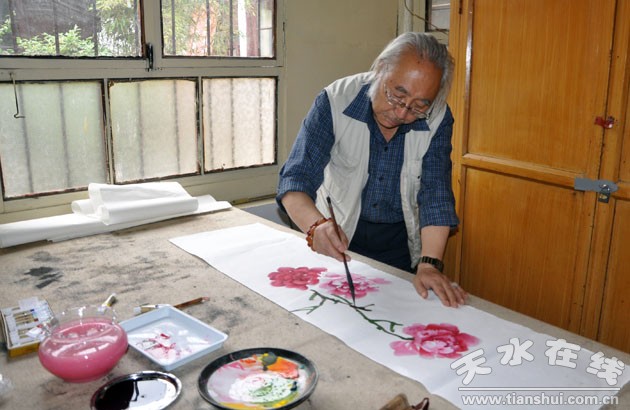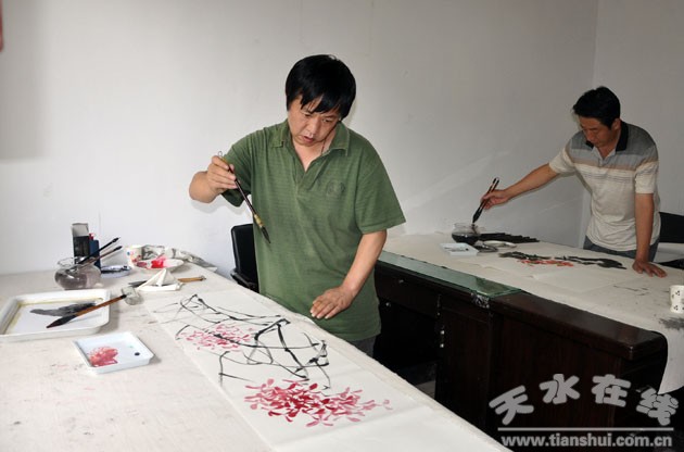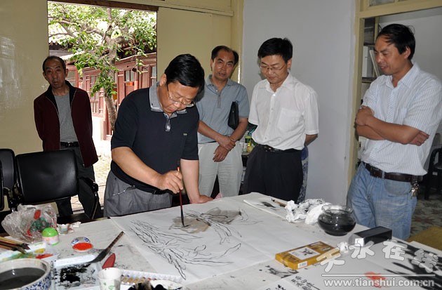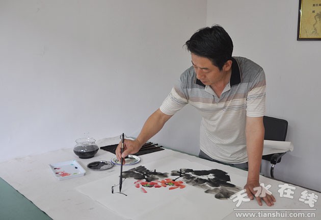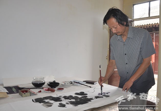 (图为天水市美协副主席、秦州区文化馆馆长赵晖现场创作 )