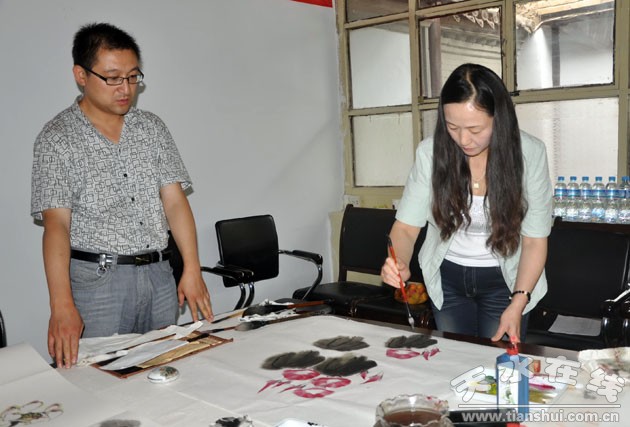 (图为秦州区政协党组书记、主席文月平现场创作 )