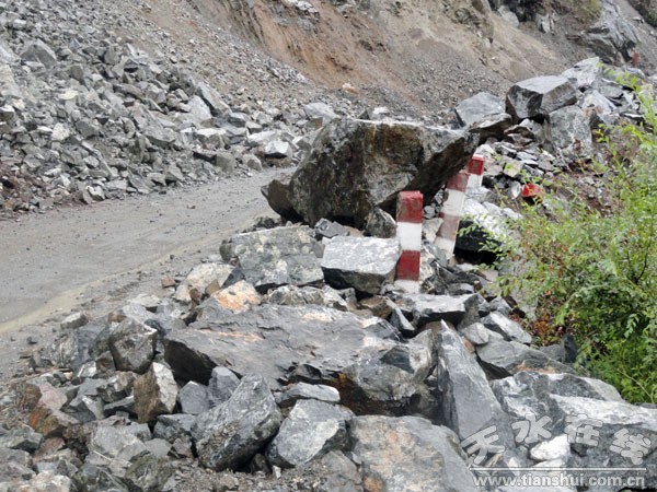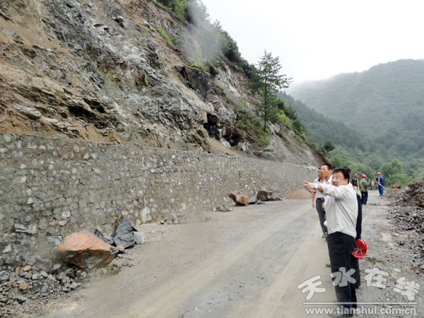 (秦州区外宣办 辛志锋 袁立斌)7月10日下午1时30分左右,由于受暴雨影响,秦州区上尧至李子园通乡油路K0+900—K1+060处左侧发生山体大体积滑坡,致使交通中断,接到娘娘坝镇群众电话后,秦州区委、区政府主要领导、分管领导第一时间紧急赶赴现场,秦州区交通运输局立即抽调3台50装载机及6辆自卸车全力开展坍塌石方清理抢通工作,阻断道路于当晚7时基本恢复通行。7月11日该段又出现新的塌方,该局派出安全保护人员,抽调装载机、汽车等工程机械驻守滑坡地段,开展24小时监控,并对山体裂缝以下危险滑动体进行减重清除,做到即塌即清。