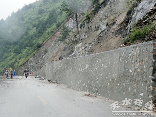 7月24日及28日,由于受持续降雨影响,该段又出现大面积滑坡,险情形势十分严峻,处治工作迫在眉睫,过往车辆及行人生命极财产安全受到极大威胁。为使山体滑塌得到彻底处治,确保行车安全和公路畅通,按照区委、区政府的安排部署,秦州区交通运输局及时组织技术人员冒着生命危险对该段进行初步勘查,勘查工作结束后,该局及时组织施工队伍进场全面开展山体滑坡处治,截止目前,该段山体滑坡处治工作取得明显成效,共完成机械清理塌方6000m3,山坡清危岩石2600m3,砌筑浆砌片石挡土墙支撑体528 m3,完成投资121万余元。