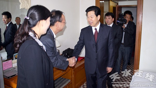 张明泰一行来到代表团驻地,与代表们一一握手,亲切交谈,充分肯定了大家在各自工作岗位上为秦州区经济社会发展所作出的积极贡献,并勉励大家发扬成绩,为把秦州建设成首善之区再立新功。