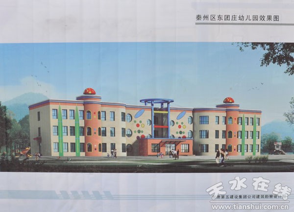 秦州区东团庄幼儿园是按照国家、省、市关于大力发展学前教育的有关政策建设的省一级一类幼儿园,教学楼为三层框架结构,建筑面积为2601平方米,总投资501.6万元,其中省级专项以奖代补资金100万元,区财政配套资金401.6万元。幼儿园建成后,将开设12个班,可满足天庆嘉园、天府华庭等周边住宅小区360名幼儿入园。