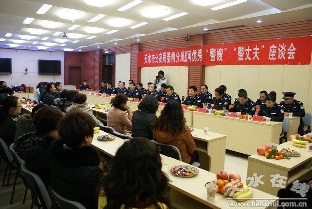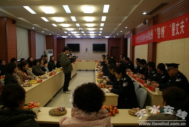 为了树立榜样、鼓励先进,切实增进公安民警家属对公安事业的理解与支持,更好的促进各项公安工作。2012年1月16日下午3点在公安大楼三楼会议室召开了秦州公安分局慰问优秀“警嫂警丈夫”座谈会。参加会议的有天水市公安局副局长、秦州公安分局局长张庆中、政委李世和及党委班子全体成员、机关各科队室负责人及优秀警嫂警丈夫代表共计60余人。会议由秦州公安分局政委李世和主持。