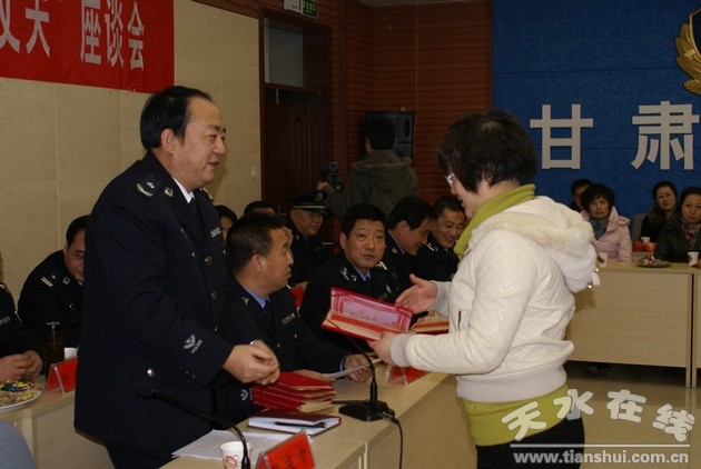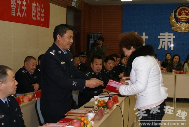 秦州公安分局政委李世和宣读了优秀警嫂警丈夫名单,各局领导向获奖的优秀“警嫂警丈夫”颁发了荣誉证书和奖金。