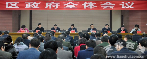 (秦州区外宣办 辛志锋)2月29日上午,秦州区政府召开全体会议,会议主要任务是贯彻落实中央、省、市和区委有关会议精神,全面安排今年政府重点工作任务,动员全区上下解放思想,抢抓机遇,开拓创新,扎实工作,确保全年各项工作任务有效落实,推动全区经济社会率先跨越发展。