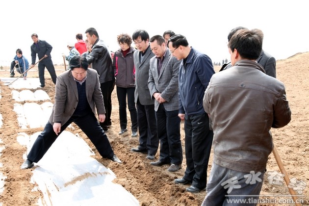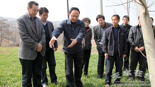在古集梁农业综合开发区汪川镇果树建园点,针对果树连片规模种植的问题,王钧指出,要通过土地流转的形式,培养、扶持大户,做好管理工作,以点带面,实现规模效益。秦州区整流域、整片带抓农业产业的思路很好,要解决“年年栽树不见树”的问题就要从体制机制上入手,各项工作已经顺利起步、势头良好,但不能盲目乐观、掉以轻心,要在后续管理上下功夫,绝不能松劲。
