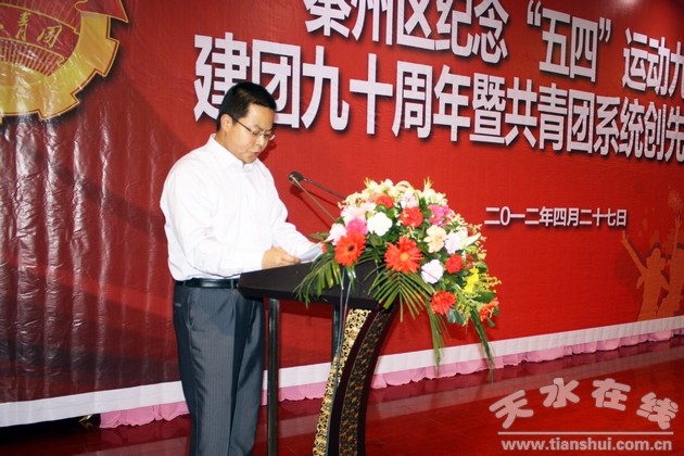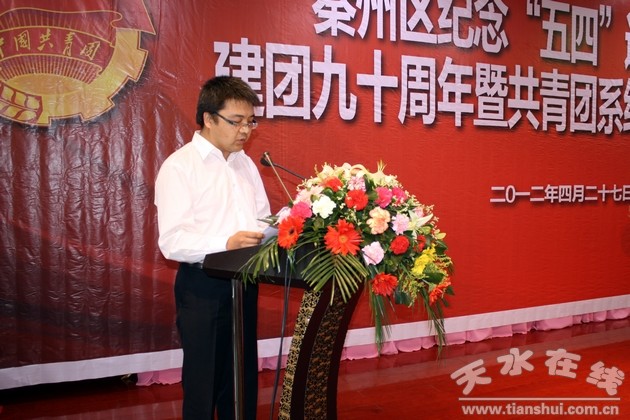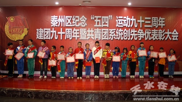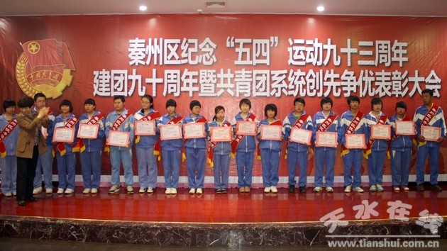(秦州区外宣办 刘可)4月27日,秦州区召开纪念“五四”运动93周年、建团90周年暨共青团系统创先争优表彰大会,弘扬“五四”精神、缅怀共青团历史,号召广大青年为秦州经济社会率先跨越发展建功立业。
