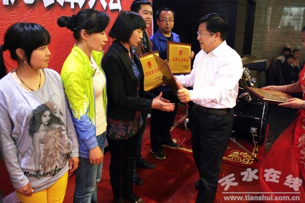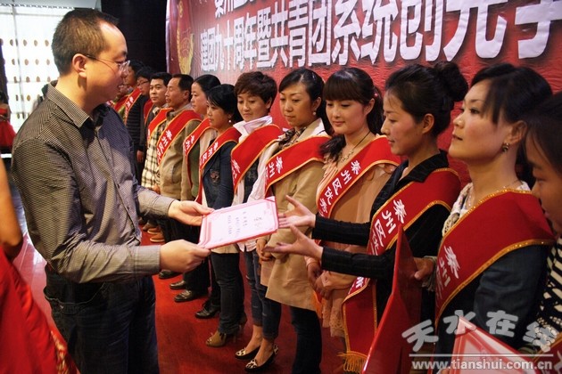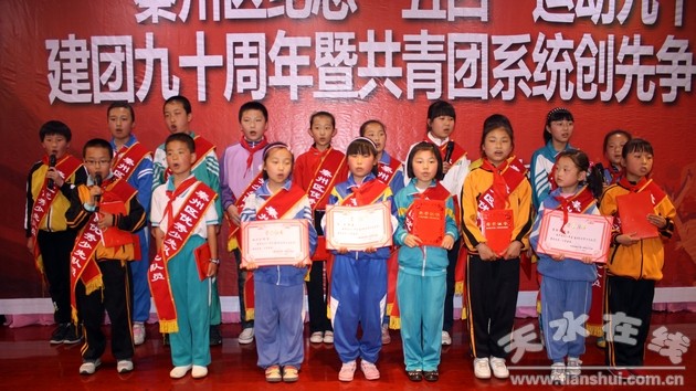 会上对皂郊镇团委等5个五四红旗团委,玉泉镇东方红村团支部等10个五四红旗团支部,新华门小学少先大队等5个优秀少先大队,天水杨师傅清真糕点坊有限公司青年志愿者服务队等5个优秀青年志愿者集体,中梁乡团委书记王静等10名优秀团干部,天水市三中高二(1)班张瑜琪等20名优秀团员,建三小学大队辅导员马文慧等10名优秀大队辅导员及新华门小学五年级(5)班学生李斯怡等20名优秀少先队员进行了表彰奖励。