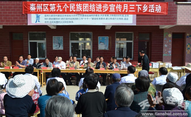 (区委外宣办 李保怀)5月19日,秦州区政协在皂郊镇小庄村组织开展2012年第九个民族团结进步宣传月“三下乡”活动。 本次活动是区政协贯彻落实区委、区政府关于在全区范围内开展第九个民族团结进步宣传月活动精神,贯彻党和国家民族政策,促进民族团结,以民族团结促跨越发展的一次重要主题实践活动。