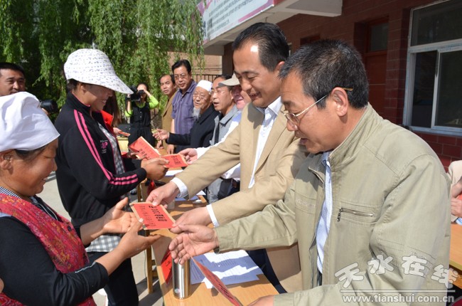 启动仪式结束后,区委副书记成少平来到小庄村清真寺,看望了宗教界人士并进行亲切座谈;秦州区基督教义诊队的医务人员为群众免费义诊,共吸引500余人前来就诊,免费发放药品价值8000余元;统战、民政、计生部门对村上的特困户、二女户进行了慰问走访;区科协、果业局等单位为广大群众送去了果树栽培与管理等方面的技能培训,共培训100余人,发放农技科技图书350余册;区文联、书协、美协的书画家,还为广大群众现场创作书画作品320余副。