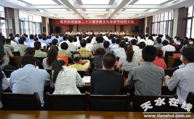 (秦州区外宣办 裴振刚)为全面做好2012年第二十三届中国天水伏羲文化旅游节秦州区节会筹备组织动员工作,该区按照市节会办的总体安排部署,节会筹备前期及时制定了《2012(壬辰)年甘肃省公祭中华人文始祖伏羲大典暨第二十三届中国天水伏羲文化旅游节总体方案》,成立了2012年“节会”筹备工作领导小组。针对“走进名城看天水”旅游考察活动线路沿线、相关景区景点的环境综合整治、氛围营造、旅游接待等工作重点,明确各部门职责,细化工作任务。6月8日专门召开秦州区迎接第二十三届天水伏羲文化旅游节动员会议,对节会筹备各项工作进行了全面动员,进一步明确了各部门工作责任和各项工作重点,各项工作正在紧张有序开展。