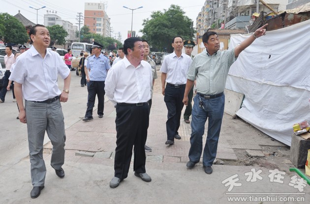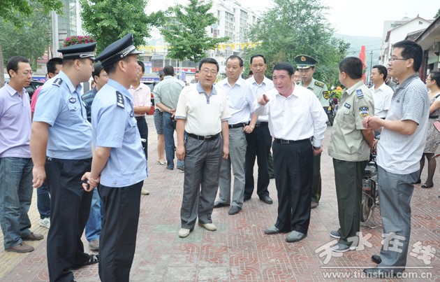 (秦州区外宣办 彭高峰)6月17日,副区长顾应存、康泰来带领行政综合执法、环卫、安监、消防、公安、卫生等部门负责人,对节前市容环境、氛围营造、社会治安及安全管理等工作进行了综合大检查。