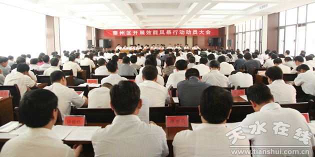 (秦州区外宣办 彭高峰)6月20日下午,秦州区召开效能风暴行动动员大会,传达贯彻省第十二次党代会和省、市效能风暴行动动员大会精神,全面安排部署全区开展效能风暴行动的各项工作任务。