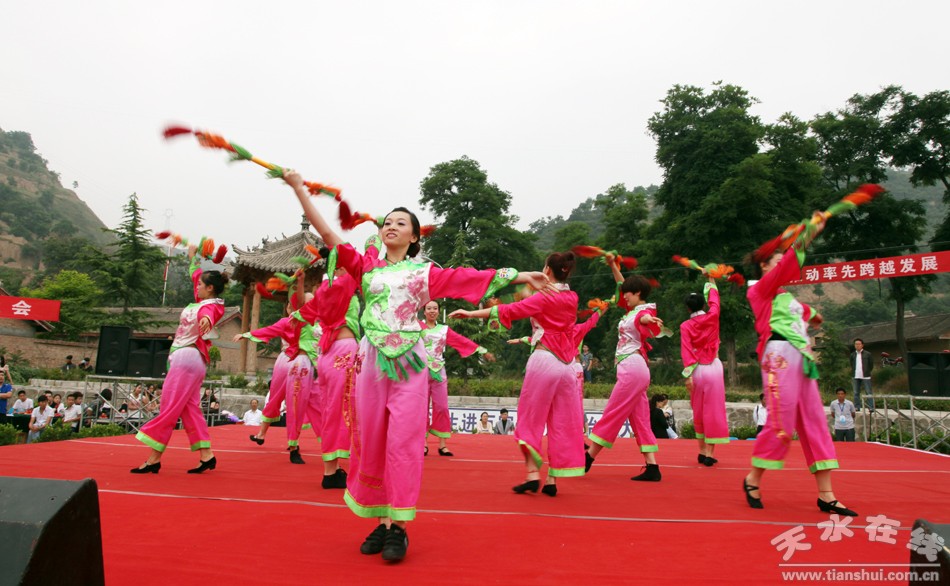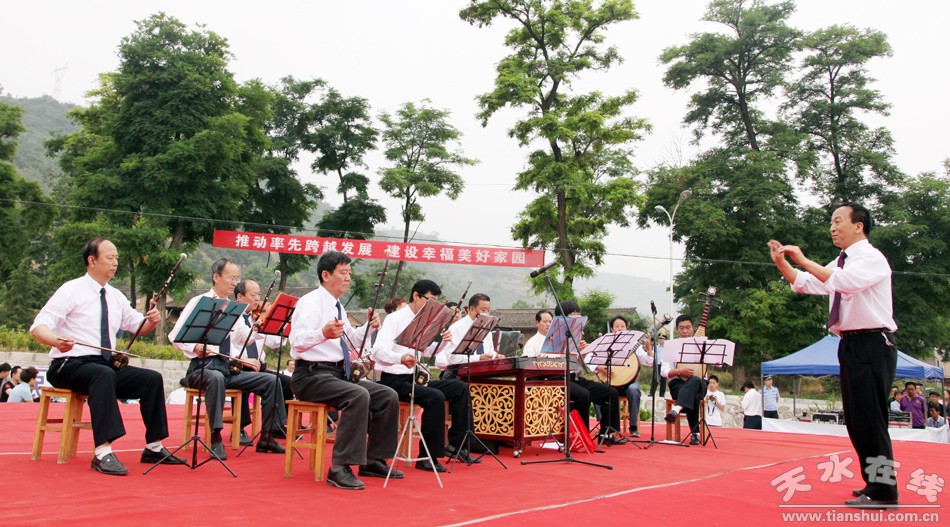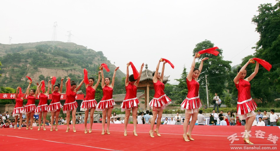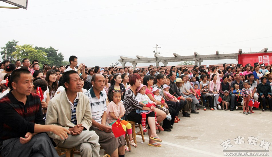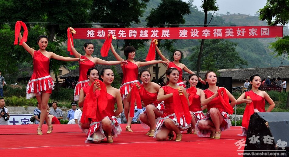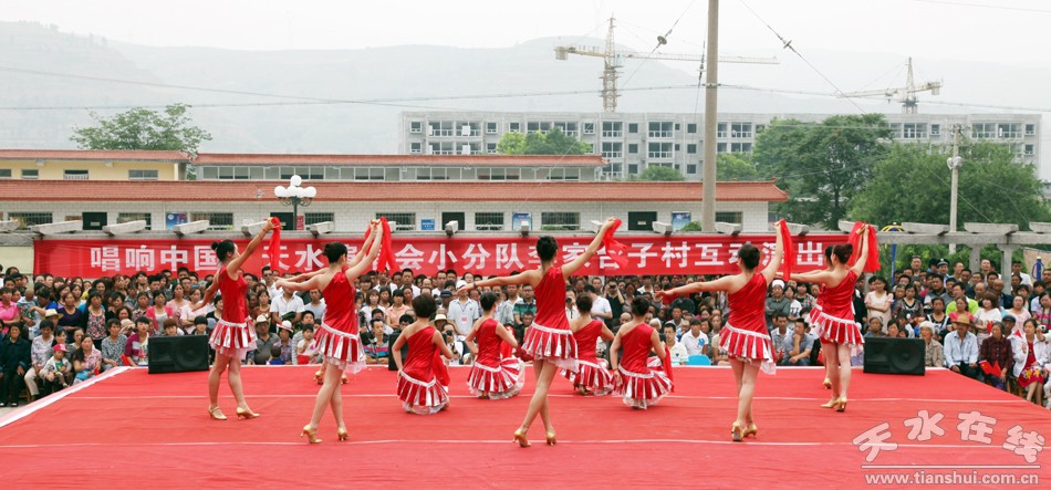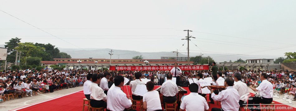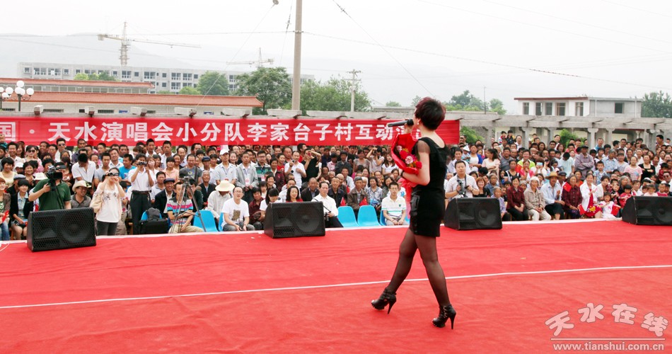 一大早,附近四里八乡的老乡们不约而同地聚集到李家台子村文化小广场,为了采摘销售樱桃已经忙了近两个月的农民都期待着在这里品味一道由天水当地演员以及唱响中国的艺术家们共同烹制的文化大餐。上午9时许,来自总政歌舞团青年演员乔治和南京解放军艺术团的青年歌手文春芬把一首首耳熟能详的经典歌曲奉献给了观众;李家台子演出小分队编排的十几个节目当中,有传统的秦腔曲目,也有器乐演奏,更有热情的舞蹈。演员与观众在现场精彩互动,气氛热烈。激昂豪迈的歌声赢得了现场观众的热烈掌声。