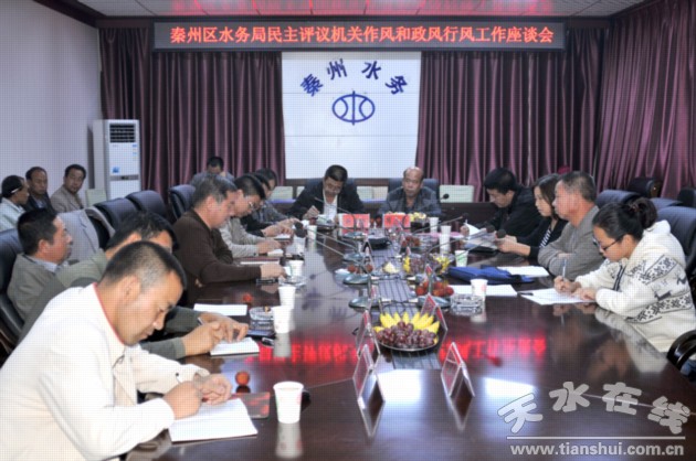 (秦州区水务局 王羿)秦州区水务局继9月18日召开效能风暴行动民主评议机关作风和政风行风座谈会后,于9月24日再次召开座谈会议,广泛征求市、区有关部门和服务对象的意见建议。会议邀请了区行风评议第三工作组和市水务局、区委农工部、区监察局、发改局、财政局、审计局、国土局、林业局等13家单位负责人和服务对象及职工代表参加。