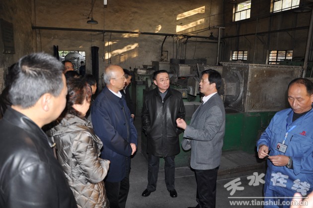 (2011年11月23日,国务院国资委监事会主席闫克庆、中国西电集团公司总经理张雅林一行在市委副书记、市长王锐的陪同下,到天水西电长城合金有限公司调研了企业生产经营及高压电工触头生产基地项目建设情况。) |
