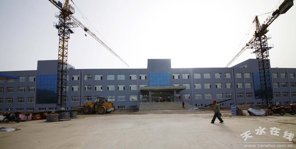(11月3日,天水在线走进秦州区,开展“喜迎党的十八大,走进秦州看项目”主题采访活动,用镜头记录和展示秦州区近年来项目建设的喜人成果,全面反映以项目建设为抓手推动秦州经济快速发展的良好局面。当日,天水在线一行先后走进贾家公馆保护维修工程、西电天水合金电工材料产业园、邓宝珊将军纪念馆、天水市六中灾后重建项目、秦州区农业大厦项目、秦州区人民医院异地迁建项目、山水新城保障性住房小区项目、秦州区村村通水泥路建设项目现场进行了实地采访。图为即将投入使用的西电天水合金电工材料产业园综合办公楼。)