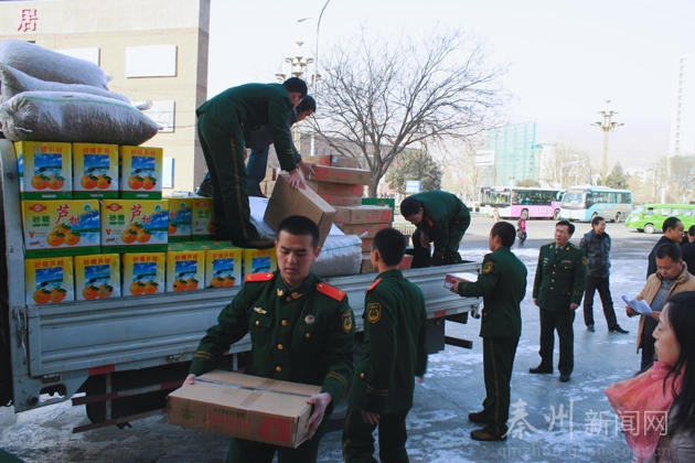 (秦州区外宣办)1月15日,秦州区四大组织领导分成两个慰问组,对驻区解放军、武警、预备役部队进行慰问,为他们送去了慰问品,与指战员亲切交谈,了解训练生活情况,并向他们表示亲切问候,祝愿他们过个幸福快乐的春节!