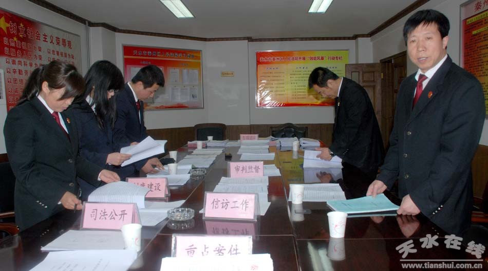 广泛开展以评(案件评析)促学、以考(业务考试)促学、以赛(司法竞赛)促学、以训(定期培训)促学、以研(开展调研)促学、以会(周一例会)促学,做到新的法律及时学,旧的法律巩固学,联系审判促进学,推进“学习型”法院创建步伐。重点结合审判工作,采取典型案例研讨,庭审观摩讲评,裁判文书展评,优秀论文评比,大力开展岗位练兵,提高法官办理案件、驾驭庭审、司法论理的能力和水平。全年共组织庭审观摩31次,开展裁判文书展评4次120余份。年内撰写论文23篇,编发《秦州法院简报》62期,在“中国法院网”、《甘肃法制报》、《法刊》等报刊、网站刊登宣传文章和案例130余篇。庭审工作和裁判文书均被上级法院年度表彰奖励,1人被省高院评为全省法院系统宣传工作先进个人,1篇论文在中国法学会年度征文中获奖,6篇论文在省、市法院学术研讨会上获奖。