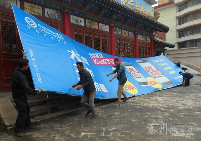 (秦州区外宣办)为了规范户外广告设置行为,加强户外广告管理工作,秦州区执法局大城中队于5月下旬开始对辖区内的户外广告开展了集中整治。