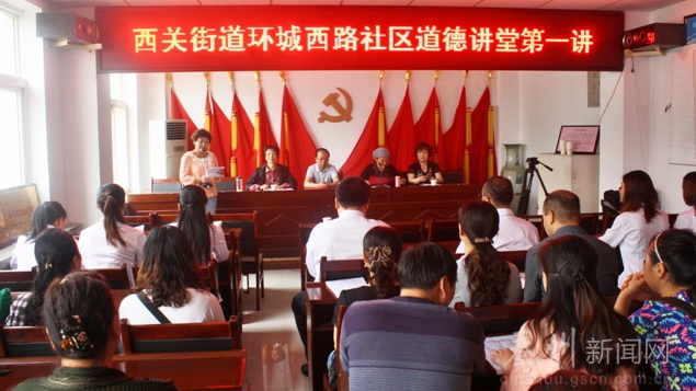 此次道德讲堂分为“唱一首歌曲、讲一个故事、做一个承诺、诵一段经典、领导点评总结”五个环节进行。特邀主讲人、原秦州区广播电视局局长赵淑岚女士分别从社会公德、家庭美德、个人品德三个方面,生动讲述了自己和居民身边的感人事例。随后,环西社区干部朗诵了自编自创的《环西社区道德歌》,传播社会正能量。活动最后,区文明办和西关街道负责同志先后作了活动点评和总结讲话,重申弘扬传统文化、引领道德风尚、加强社区居民的文明素养的重要性,将活动推向了高潮。