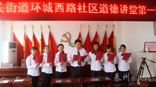 (环西社区干部朗诵自编自创的《环西社区道德歌》)