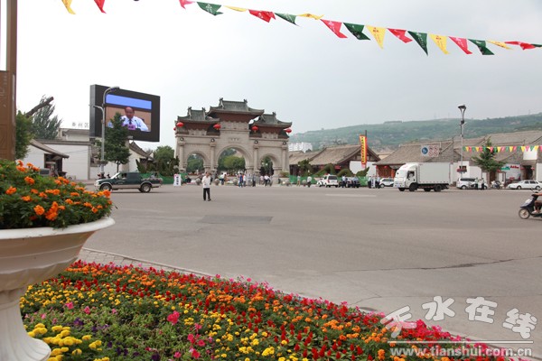 (秦州区外宣办)伏羲文化旅游节开幕在即,连日来,秦州区扎实筹备节会,努力营造节会氛围,展现美丽秦州风采,在积极开展环境卫生综合整治的基础上,加大宣传氛围,突出党的十八大和文化旅游主题,对高速公路沿线的大型固定宣传橱窗内容进行置换更新,在重点区域摆放鲜花、悬挂彩旗、公益广告宣传牌,满城一片节前的祥和喜庆氛围。
