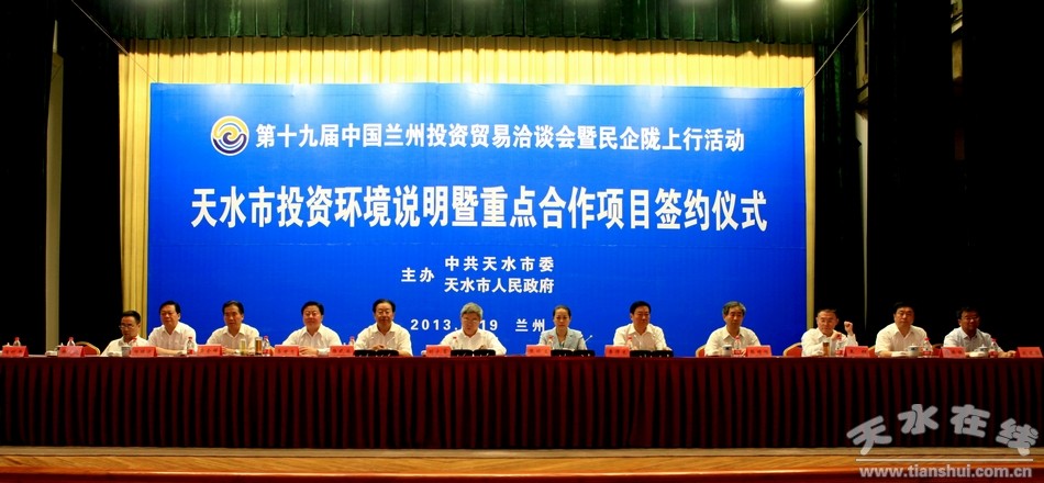 (秦州区外宣办)6月19日,在第十九届中国兰州投资贸易洽谈会暨民企陇上行活动中,天水市投资环境说明暨重点项目签约仪式在宁卧庄宾馆举行。