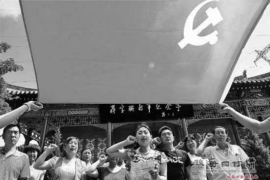 天水市秦州区天水郡街道暖和湾社区新党员在邓宝珊将军纪念亭举行入党宣誓仪式。在党的第92个生日来临之际,暖和湾社区积极组织广大党员开展重温入党誓词、爱国主义教育、慰问辖区困难党员等活动。本报记者李小龙
