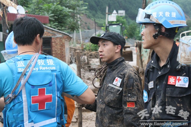 (秦州区外宣办 刘可)在娘娘坝特大暴洪泥石流灾害抢险救灾一线,奋战着一支由民间公益人士组成的专业紧急救援队伍,他们的名字叫“蓝天”。7月28日,在接到抢险救灾指挥部“进入李子园向长河一线深入探查情况”的任务指令后,蓝天救援队派出5名先遣队员挺近李子园。