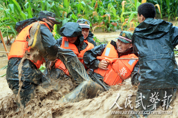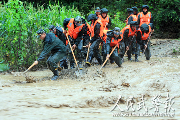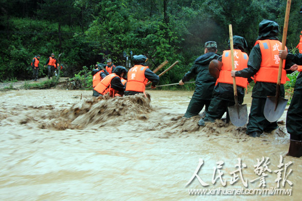 “请武警官兵迅速出动,灾区泥石流已有人员伤亡和失踪!”灾区告急!救援官兵采取“边行动边报告”的特殊用兵模式,25日早晨8时集结完毕,9时20分便摩托化到达45公里外的娘娘坝镇郭家鞍子,为抢险救灾赢得了先机。