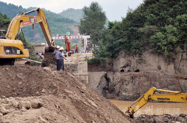 经天水公路总段协调,从昨天起,交通局抢险人员和当地群众一道全力奋战,加班加点,终于架成一座宽四米,长二十余米的钢桥。该桥架设完成后,为下一步救灾打下了坚实的基础。